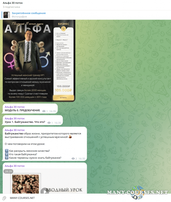 Вы находитесь на странице товара «Денис Байгужин - Альфа. 30 Поток. Тариф Бизнес», это материал 2024 года, который, мы надеемся, принесет вам пользу. Данный курс расположен на платформе «Канал Telegram».Скриншоты с платформы на которой расположены материалы вы можете найти выше. В нашем магазине курсы доступны по самым выгодным ценам. Вы можете перейти на оригинальный продажник, после чего принять решение о покупке. Если бы вы покупали у самого автора, то данный курс вам обошелся 105000 рублей. Вы получаете этот курс, купив в нашем магазине MANY-COURSES.NET, с огромной скидкой, всего 2199 рублей. Обучающий курс входит в рубрику «Соблазнение и пикап», вы можете поискать другие сливы курсов в этой рубрике. В нашем магазине Вы найдёте ещё много курсов от автора «Денис Байгужин», достаточно ввести в поиск имя автора.